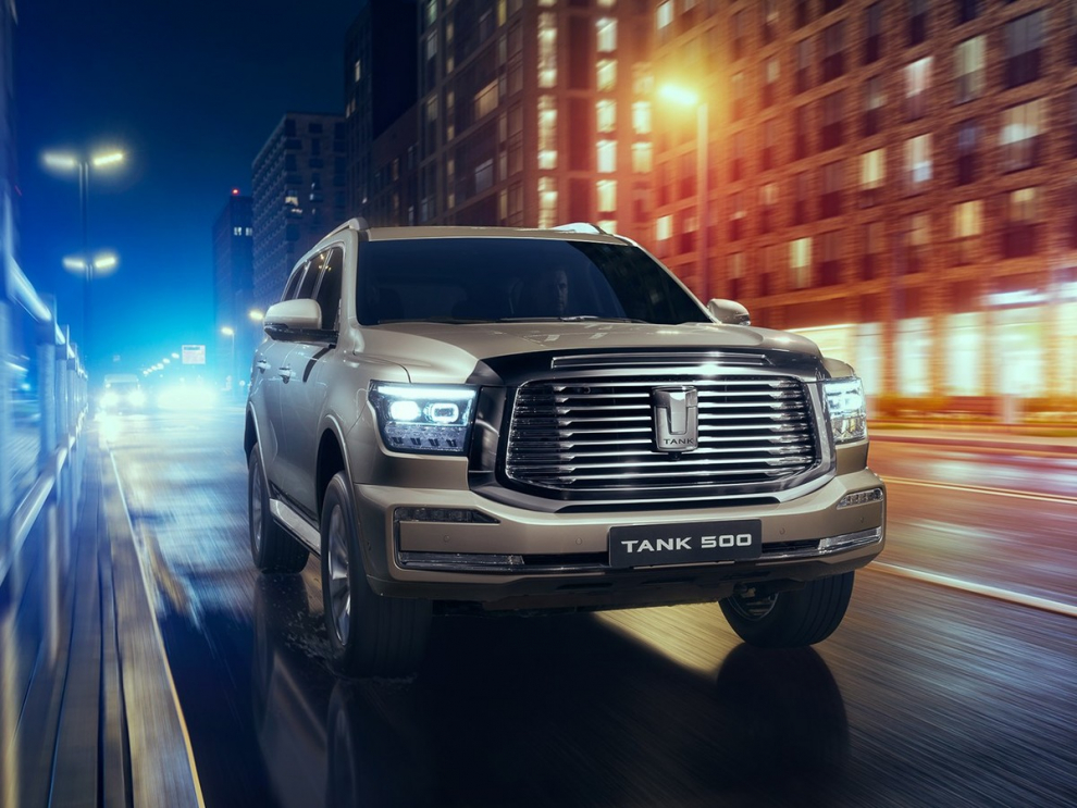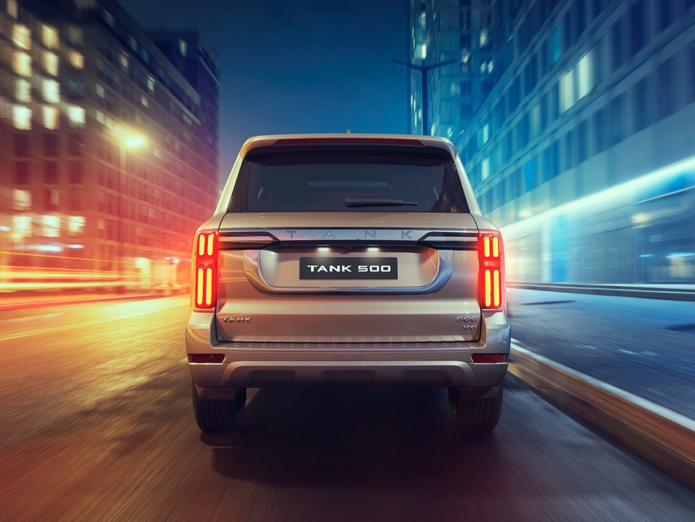 TANK 500 имеет следующие размеры: длина автомобиля составляет 4 метра 88 см., ширина 193,4 cм., высота 190,5 cм. Колесная база автомобиля составляет 285 cм. Дорожный просвет 22,4 cм. Объем багажника составляет 795 литров. Максимальный объем багажника 1489 литров (при сложенном втором ряде сидений). Более подробную информацию вы найдете на странице технических характеристик TANK 500.