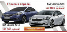 Только в апреле в салоне дилерского центра «Стрим-Авто» действует специальная акция на модель KIA Cerato. Спешите! До конца месяца осталось всего несколько дней!