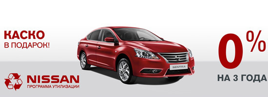 **Указанные условия предусматривают компенсацию процентной ставки по кредитному договору соразмерным снижением цены на автомобиль, приобретаемый за счет кредита, предоставляемого АО «РН Банк» (лицензия Банка России №170 выдана 16.12.2014 г.), и действительны при условии заключения заемщиком договора страхования от несчастных случаев и болезней по программе «Защищенный Кредит», предоставляемой ООО "Страховая компания КАРДИФ" (лицензия ФССН С № 4104 77 от 15.12.2008 г.). Предложение не является офертой, действительно до 30.05.2015 для автомобилей Nissan Sentra 2015 года выпуска стоимостью до 1 000 000 рублей РФ. Первоначальный взнос: от 50% стоимости автомобиля. Обеспечение по кредиту: залог приобретаемого автомобиля. Условия, определяющие и влияющие на величину полной стоимости кредита: сумма кредита от 100 тыс. руб.; валюта: рубль РФ; срок кредита: 3 года; процентная ставка по кредиту: 10,2% годовых; платежи по погашению основной суммы долга и уплате процентов по кредитному договору: ежемесячные равные (аннуитетные) платежи; страховая премия по договору страхования от несчастных случаев и болезней по программе «Защищенный Кредит». Условия и тарифы могут быть изменены в одностороннем порядке.