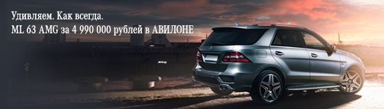 В честь победы в AMG AWARD 2013 года, компания АВИЛОН подготовила ограниченное предложение на автомобили ML 63 AMG по фиксированной стоимости 4 990 000 рублей!*
