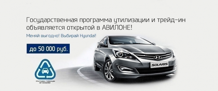 Обменяйте Ваш автомобиль на новый автомобиль* Hyundai Solaris в АВИЛОНЕ по программе государственной утилизации.