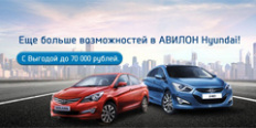 Только до 31 марта ловите выгоду от АВИЛОН до 70 000 рублей и выгодное КАСКО – всего 3,5%* при покупке нового Hyundai Solaris или Hyundai i40.