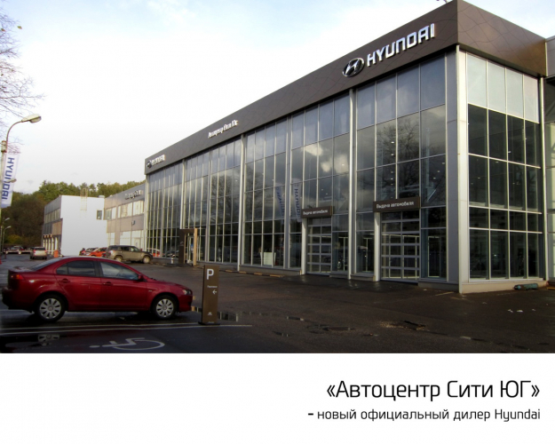 В октябре 2015 года на 22 км МКАД открылся новый официальный дилер Hyundai – «Автоцентр Сити ЮГ». На сегодняшний день это один из самых больших дилерских центров в столице, занимающий площадь более 1500 кв.м. и единственный в России, чья работа полностью соответствует высокому стандарту GDSI компании «Хендэ Мотор СНГ». «Автоцентр Сити ЮГ» является дилером премиум-моделей, таких как Equus и Genesis.