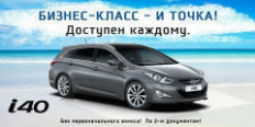 «Корея Моторс», официальный дилер Hyundai, предлагает Вам воспользоваться уникальной кредитной программой «4% страховой тариф КАСКО и 0% первоначальный взнос»* и приобрести новый автомобиль бизнес-класса Hyundai i40 стоимостью от 849 000 рублей**  на невероятно комфортных условиях.