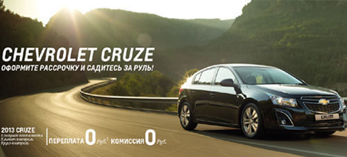 *«Рассрочка» или «ставка 0%» – маркетинговая ставка по программе Chevrolet Finance, реализуемой совместно с ВТБ 24 (ЗАО) (генеральная лицензия Банка России на осуществление банковских операций № 1623 от 13 июля 2000 г.). Указанная маркетинговая ставка не является процентной ставкой по кредиту и отражает фактические затраты на финансирование покупки нового автомобиля Chevrolet Cruze в кузове хэтчбек или седан 2012, 2013 гг, приобретаемого у официальных дилеров Chevrolet с привлечением кредитных средств ВТБ 24 (ЗАО), при одновременном снижении стоимости со стороны дилера Chevrolet.