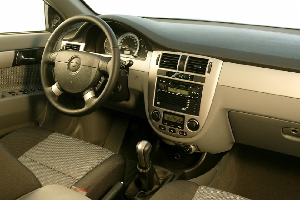 За эти деньги покупатель получает модель Lacetti Sedan с противотуманными фарами, отделкой центральной консоли под "металлик", хромированными внутренними ручками дверей, кожаной отделкой руля и рычага КПП, поясничной поддержкой водительского сиденья, центральным подлокотником между передними сиденьями, регулируемой по высоте и вылету рулевой колонкой, передними и задними электростеклоподъемниками, 6-ю динамиками.